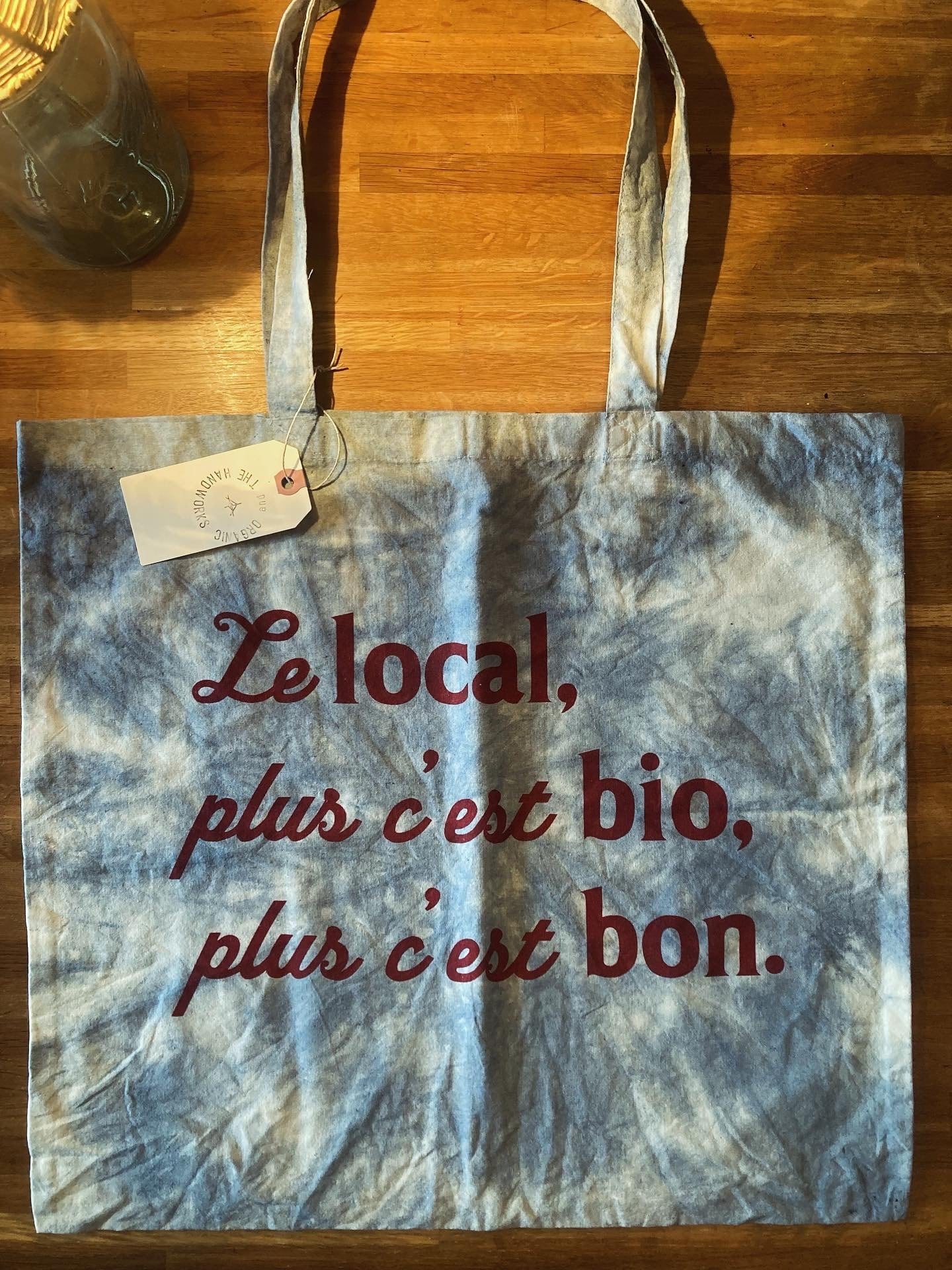 藍錠(インド原産コマツナギの葉から採れる天然のインディゴ顔料)で染めました。